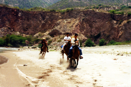 riding peruvian pasos (and a thoroughbred in the middle) on the beach of the río apurímac, near hacienda carmen.